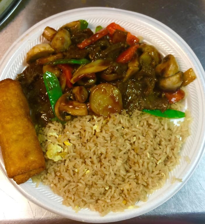 Run Run Chinese Orlando C15 Beef W Mushroom Combination Platter